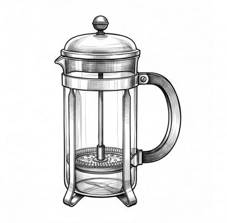 An AI generated drawing from the words “French press” – a typical rendering of a cafetiere