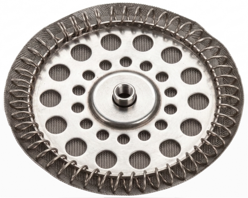 Faliero Bondanini’s improvement is most clearly characterised by a series of metal ‘tongues’ around the perimeter of the filter disc, that are intended to ensure the filter mesh is held against the coffeepot wall, to prevent sediment escaping. This improvement essentially replaces the need for a coiled spring around the filter disc of the Moneta-Cassol filter registered in Italy in March 1934 [Ref]