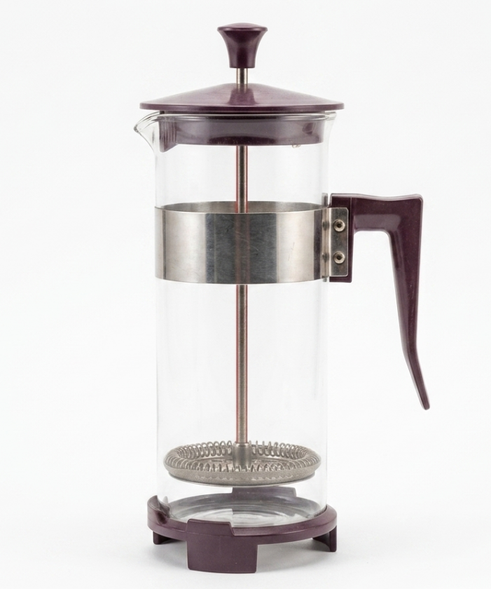 The operation is fuss-free: Place the desired amount of ground coffee into the cylinder, add the appropriate amount of boiling water and allow to steep for 3 to 5 minutes (depending upon taste for weaker or stronger coffee). Then slowly depress the plunger to the bottom. The fine-mesh screen separates the coffee grounds from the drink, which, by this time, has all the flavor and aroma you would want in your coffee.”