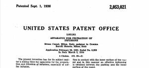 Patent number USA 2,053,021 (Bruno Cassol) 26.2.1935