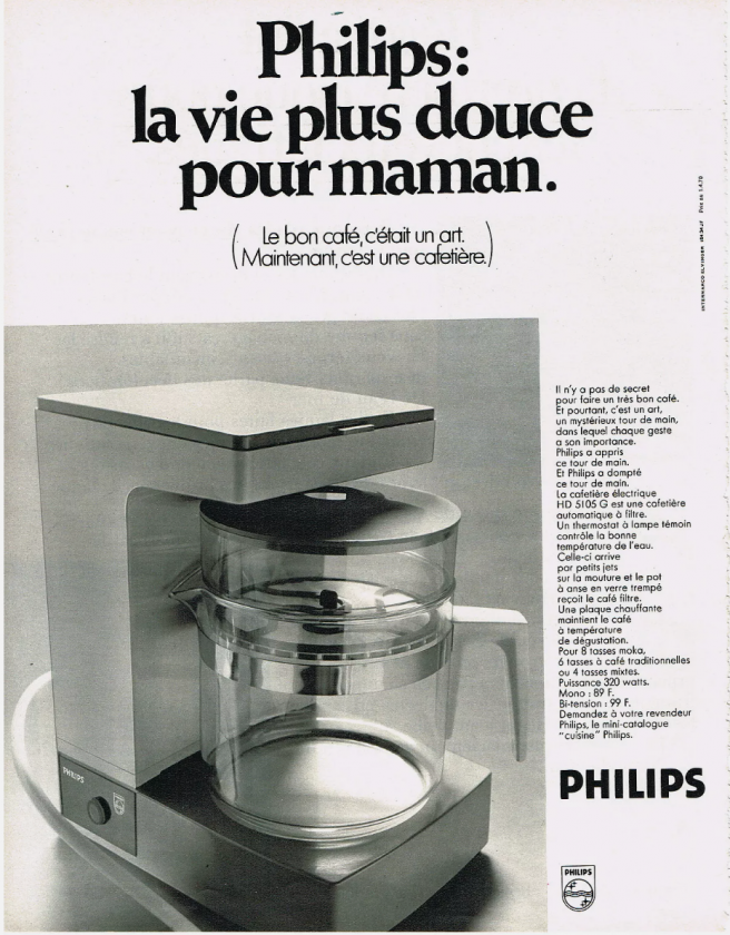 However, it seems that it was the electric coffee grinder also shown in the Ipcress File was most indicative of future trends, as during the late 1960’s and into the 1980’s timesaving, small kitchen electricals were more in vogue than manual devices. The 1970’s saw the rising popularity of electric percolators, electric filter machines and the cafetiere became a more niche product for enthusiasts rather than the mainstream, a product for small ads and specialist retailers.