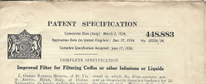 The 1934 Gemma Barelli Moneta and Bruno Cassol patents – the invention of the modern cafetiere filter