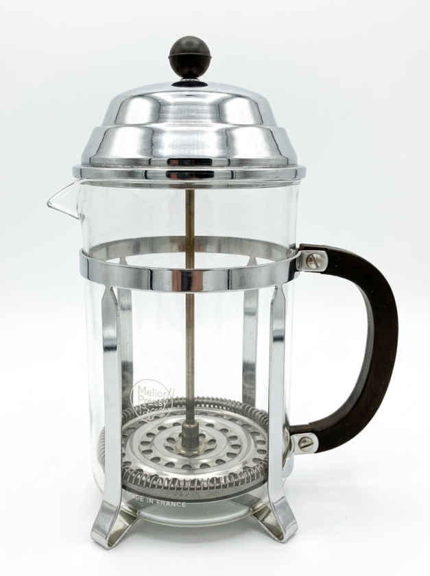 Later in around 1963 this Chambord model was updated to have a smooth domed rather than step-domed lid. During the 1970’s the Chambord name was no longer used for Melior cafetieres, but the name did re-emerge for versions of the cafetiere made in plastic in the 1980’s. In August 1991, Bodum, part of PI Design-AG acquired the Melior business, and the Chambord brand name was once again used to differentiate Bodum Chambord from its other cafetiere coffeemakers, with the Melior brand being used for a selection of other products.