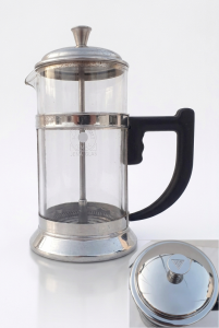… an old Frenchman took a daily walk to escape his nagging wife. He took with him a coffee pot to brew coffee over an open fire. On one occasion he forgot to add the coffee until after the water had begun to boil and the grounds would not settle, making for an unpleasant drink, full of sediment. By a stroke of good fortune, an Italian merchant was passing by, who had with him a metal mesh screen. The old man bought a small section of the screen, fitted it inside the pot and using a stick, pushed the grounds to the bottom. The two men shared the coffee and agreed it was the best they had ever tasted… they decided to open a small factory; the beginnings of the piston coffeemaker …